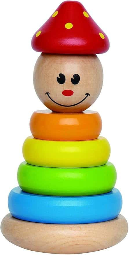 Este palhaço balança suavemente, empilha-se facilmente e faz as crianças sorrirem.
