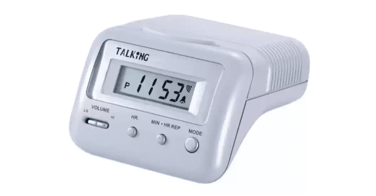 O relógio despertador de mesa Ulmost 8815 é um relógio falante com voz portuguesa fácil de operar.